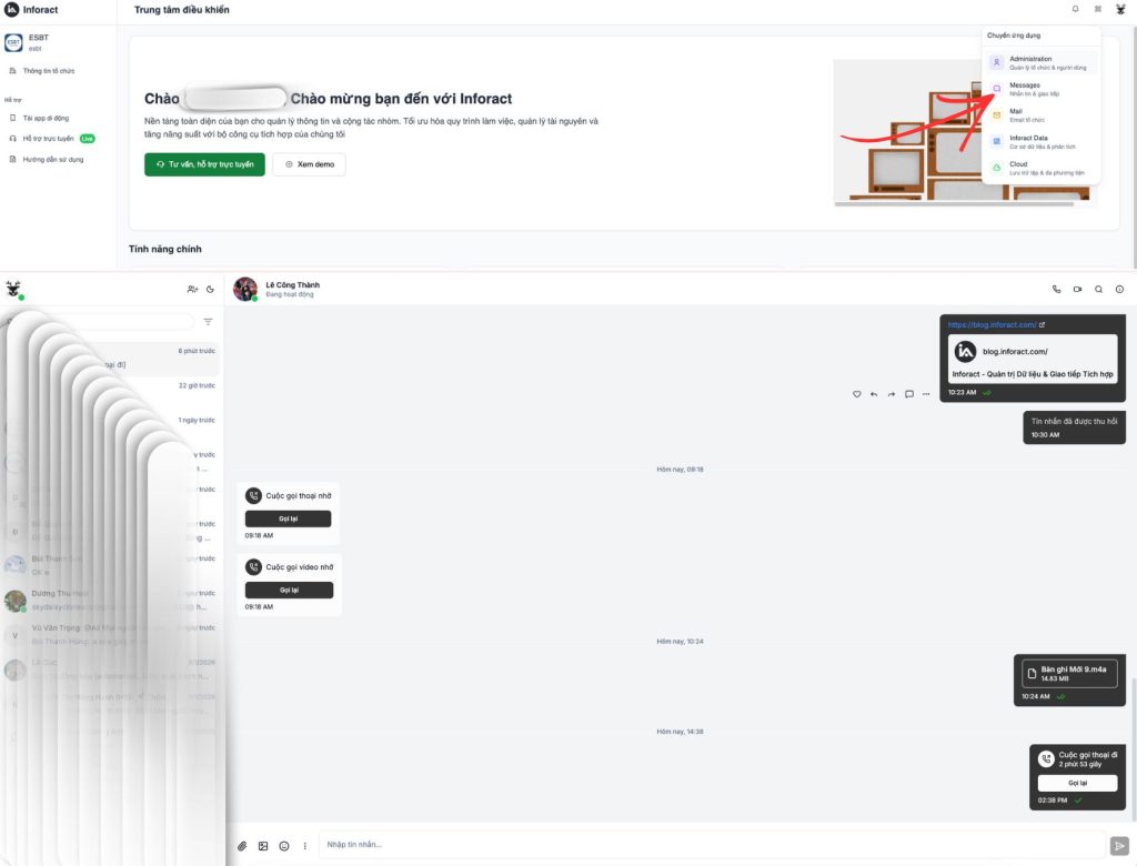 Inforact Chat được xây dựng như một trung tâm giao tiếp số – nơi giao tiếp không chỉ là trao đổi, mà là một phần không thể tách rời của quy trình vận hành.